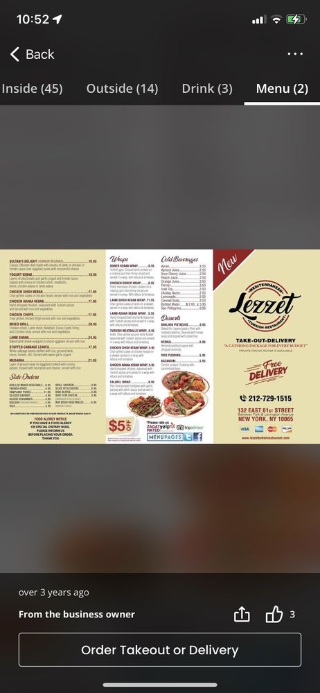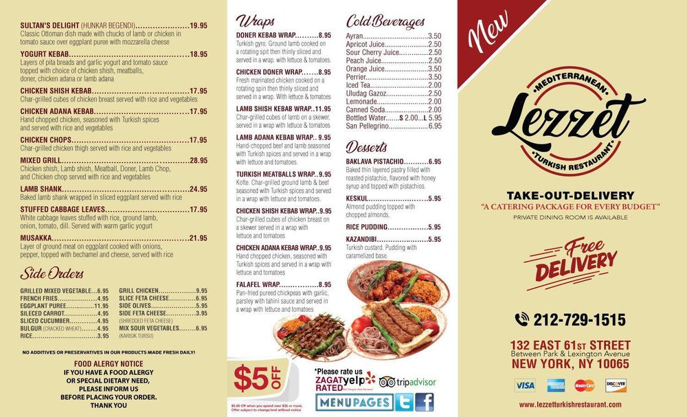 Welcome to Lezzet, a hidden gem on the Upper East Side that transports you to the rich flavors of Mediterranean cuisine. Located at 791 Lexington Ave, this cozy restaurant offers a delightful array of Turkish dishes, with a menu packed full of enticing options—from hearty lentil soups to flavorful shish kebabs and the beloved kunefe dessert.